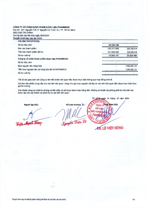 Báo cáo tài chính quý III năm 2024