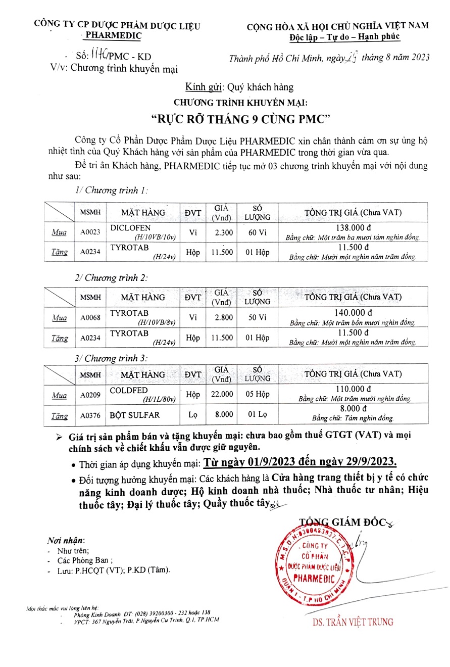 CHƯƠNG TRÌNH KHUYẾN MẠI:"KHUYẾN MẠI THÁNG 9-BẬT TÌNH YÊU LÊN", "RỰC RỠ THÁNG 9 CÙNG PMC"