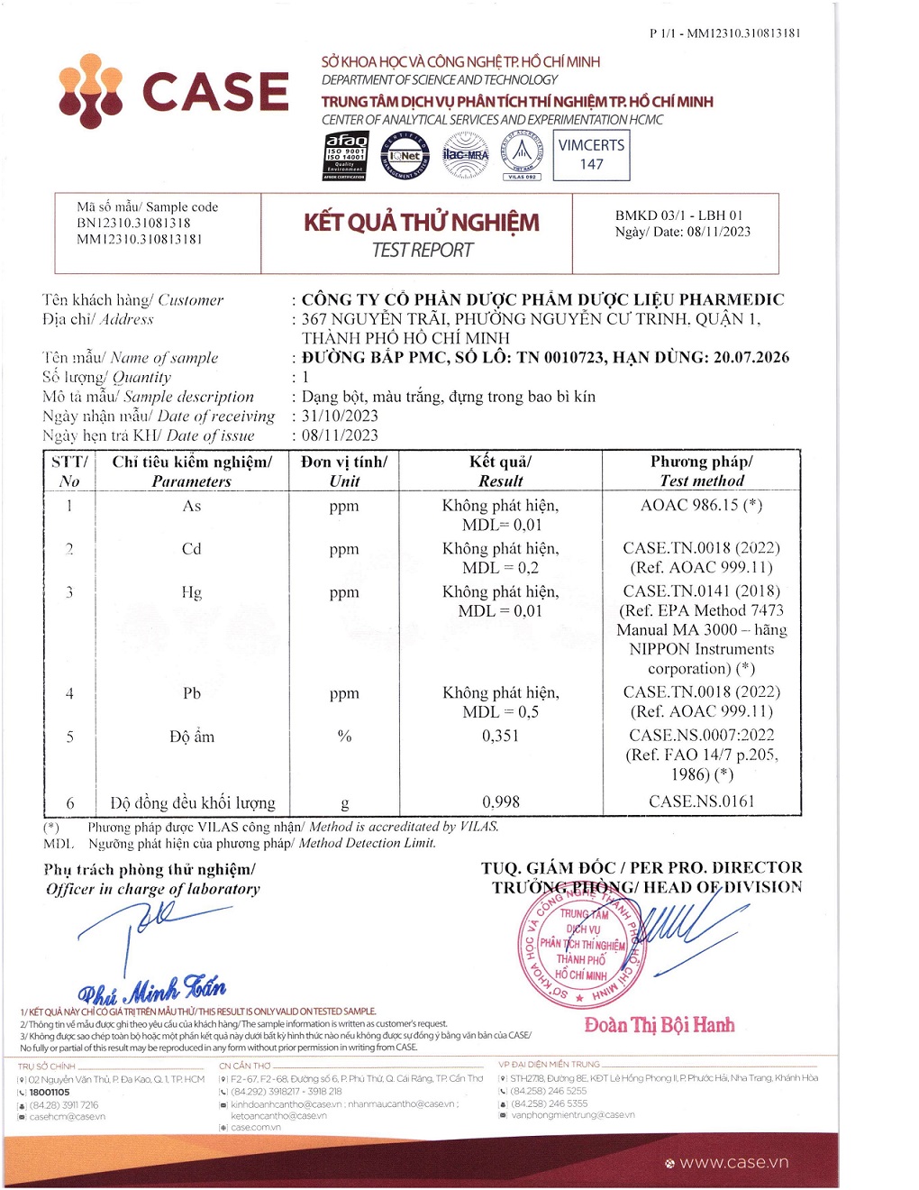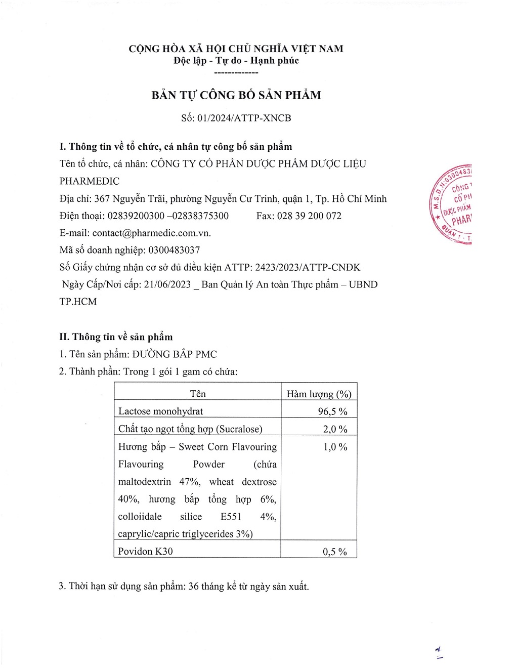 BẢN TỰ CÔNG BỐ SẢN PHẨM ĐƯỜNG BẮP PMC LẦN 2