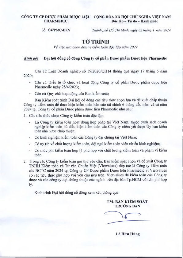 Tài liệu họp ĐHĐCĐ thường niên năm 2024 bổ sung