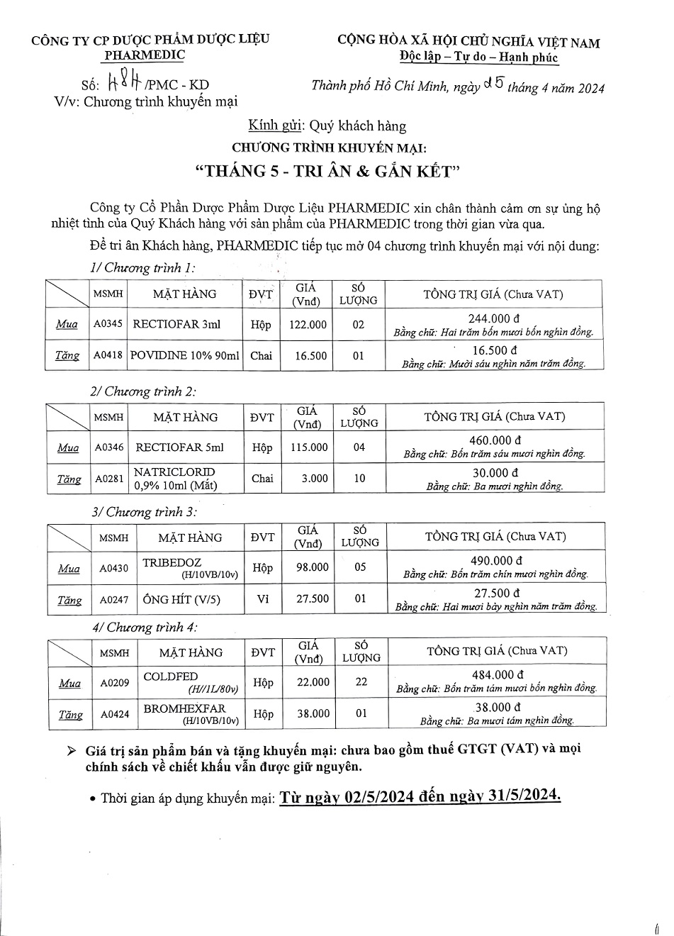 CHƯƠNG TRÌNH KHUYẾN MẠI: "THÁNG 5 - TRI ÂN & GẮN KẾT"