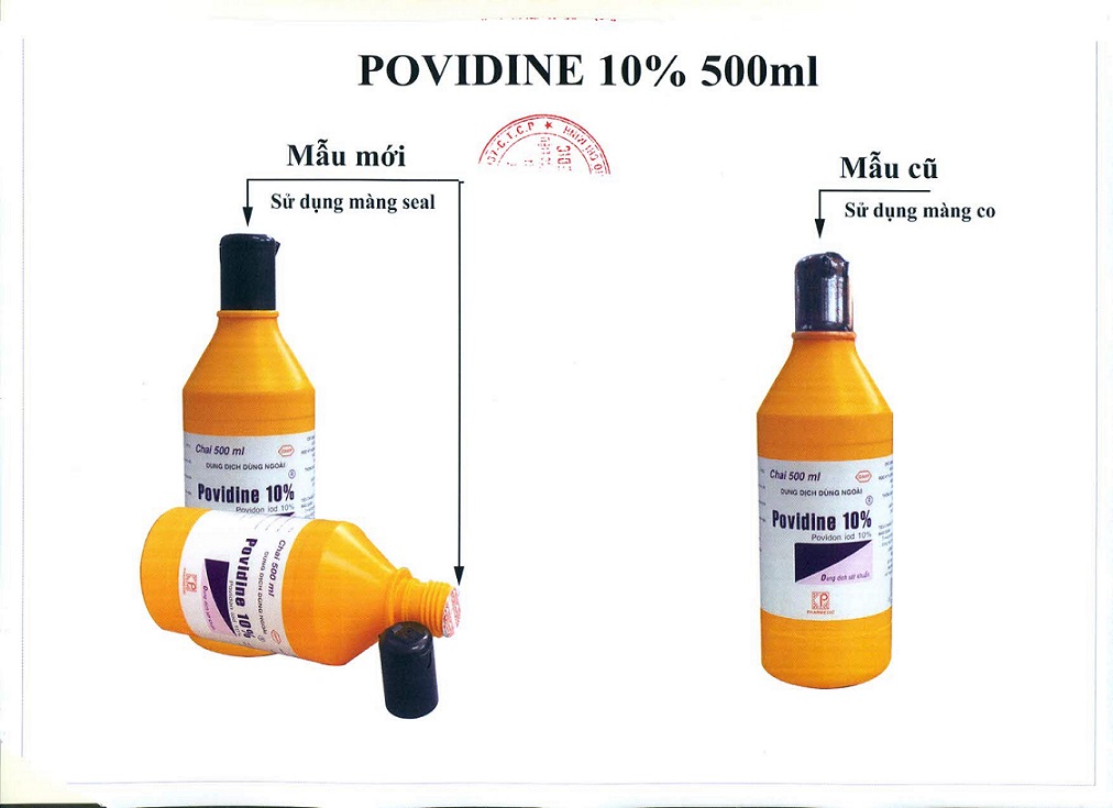 POVIDINE 10% (chai 500 ml) kể từ lô 0110220 sẽ thay đổi mẫu mã bao bì ( bỏ màng co, sử dụng màng seal)